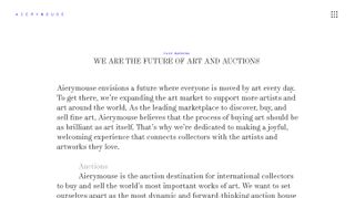 Aierymouse is redefining the art auction experience with its bold, digital-only approach. By offering weekly auctions that combine the best of traditional curation with modern technology, the platform creates a unique opportunity for collectors to discover, engage with, and bid on exceptional artworks. This innovative model not only broadens access to the art market but also cultivates an energetic community that mirrors the excitement of classic auctions, fostering deeper connections between collectors and the art they love.Through its seamless integration of tradition and digital innovation, Aierymouse empowers both seasoned and new collectors to participate in a more modern, accessible, and engaging art world. This approach positions Aierymouse at the forefront of market disruption, establishing the platform as a leader in the digital art auction industry. As the art market continues to evolve, Aierymouse remains committed to delivering an experience that honors the past while embracing the future, ensuring it stays ahead of industry trends and continues to set new standards for the auction experience.